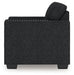 This stunning chair leaves a lasting impression. Its cozy cushions, chic coal-colored upholstery and striking nailhead trim are a perfect blend of comfort and contemporary design. And here's the showstopper‚ ambient red, white and blue LED lighting along the chair's base. The look is simply wow.
