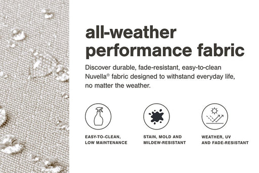 - Nuvella is an outdoor fabric that can be cleaned and offers UV resistance