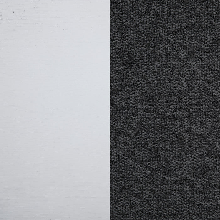 Dimensional grey upholstery creates engaging contrast and depth for this set of two modern dining chairs. Each boasts a tall, refined silhouette that's armless to create a smooth, streamlined silhouette. Cushions are padded with foam and covered in dark grey upholstery. A pearl white finish adds crisp, clean character, delivering a look that works beautifully in a variety of spaces and decor styles. Chairs are complete with flared front legs and squared edges that encourage a clean, precise look. Key Features: • Simple, clean aesthetics define this set of two modern side chairs for your kitchen or dining room • Crisp pearl white finishing creates a clean, airy ambiance perfect for spaces large and small • Dark grey upholstery over foam cushioning creates ample comfort and stylish contrast and depth • Flared, tapered front legs with a square profile add visual interest to each chair • Chairs are crafted from durable and strong rubberwood and engineered wood