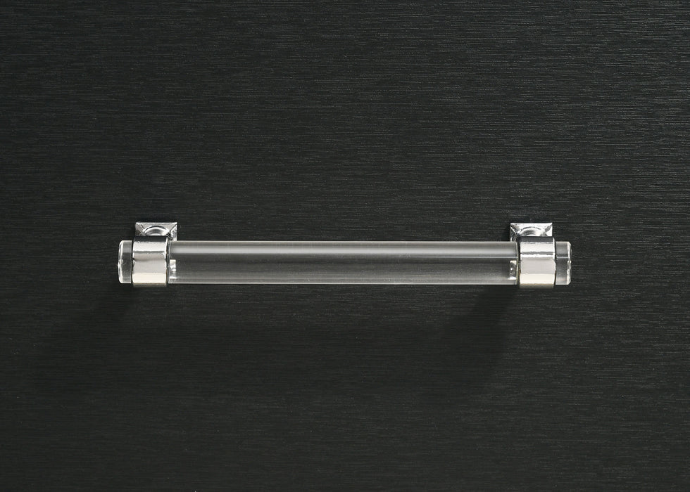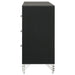 Accentuate surrounding decor with the sophistication of a modern six-drawer dresser. Designed for ample storage, it features a refined look with spacious drawers ideal for everything from clothing to accessories and linens. Its bold black finish is crisp and chic, complemented perfectly with rich, cool chrome trim that gleams in the light. Decorative legs have hairpin inspired style, offering a stylish touch of vintage energy. Long bar pulls complete the look with polished perfection. Key Features: • Chic touches bring glamour and elegant flair to a modern six-drawer dresser • Bold black finish is crisp and clean in a sophisticated bedroom setting • Cool chrome finish trim highlights the front of the case, long bar pulls and decorative legs • Drawers add abundant storage for clothing and accessories to help keep a tidy bedroom • Drawers includes English dovetail joinery that ensures utmost quality of construction