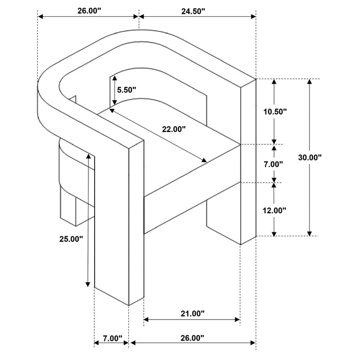 Enveloped entirely in the embrace of plush bouclé, this chair redefines the art of relaxation with its all-fabric design. The seamless transition from the cushioned seat to the curved arms, all robed in the same soft fabric, creates a cocoon of comfort. This chair's silhouette is a gentle wave of tranquility, its form an ode to the curves found in nature. The uninterrupted bouclé upholstery invites a serene tactile experience, transforming the chair into a modern sanctuary. It's a haven of softness, a singular statement of elegance and ease. Key Features: • Fully upholstered in bouclé fabric for a cohesive, luxurious look • Gentle curves provide a visually soothing silhouette • Soft, textural experience from every angle • Monochromatic design enhances modern and minimalist decors • Offers a serene, tactile experience for ultimate relaxation